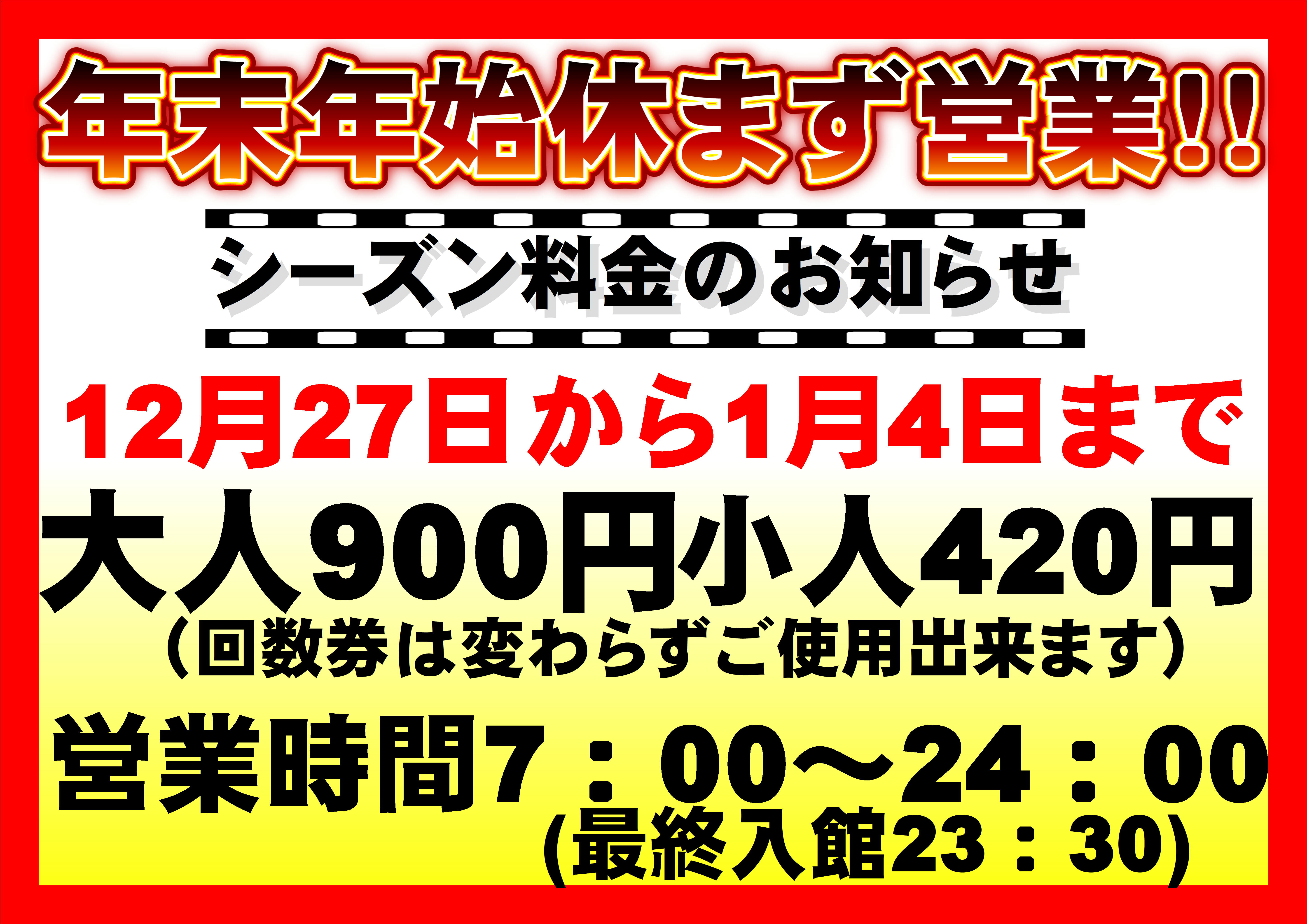 年末年始の料金案内について